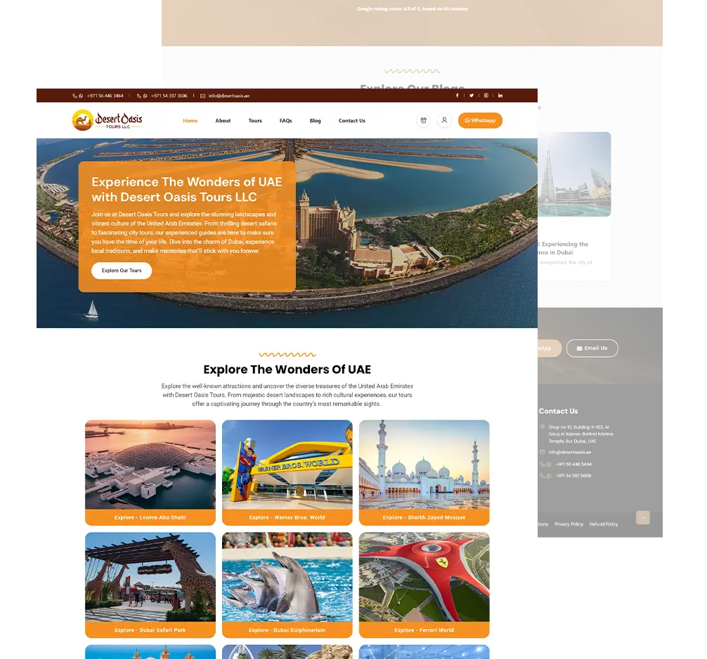 Desert Oasis Tours LLC offers unforgettable UAE adventures, guided by veteran tour experts. Founded by passionate travelers, they ensure authentic, enriching experiences. From Dubai’s skyscrapers to the desert sands, their mission is to showcase the UAE’s beauty and culture while ensuring your comfort and satisfaction.